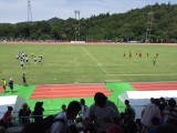 インターハイの視察で広島を訪れています。7月26日から8月2日まで、広島広域公園、呉市総合運動公園、福山市、東広島市など10会場です。写真は呉市の総合スポーツセンターの陸上競技場での一枚です。男子決勝は8月2日、エディオンスタジアムです。NHKで放送予定です。全国各地の厳しい予選を勝ち抜いて、更にこのインターハイで成長している選手達の姿は感動を与えてくれます。
